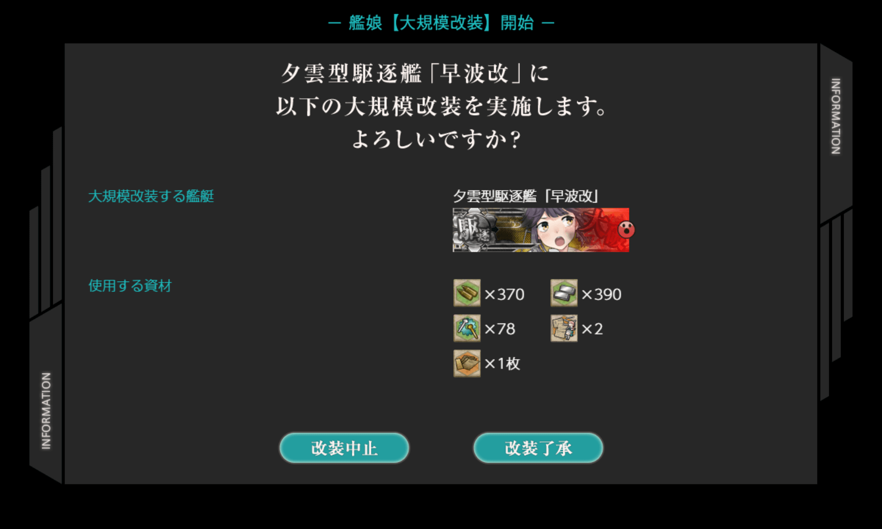 ※改装甲型駆逐艦、改夕雲型駆逐艦【早波改二】への改装に、「戦闘詳報」は不要です。