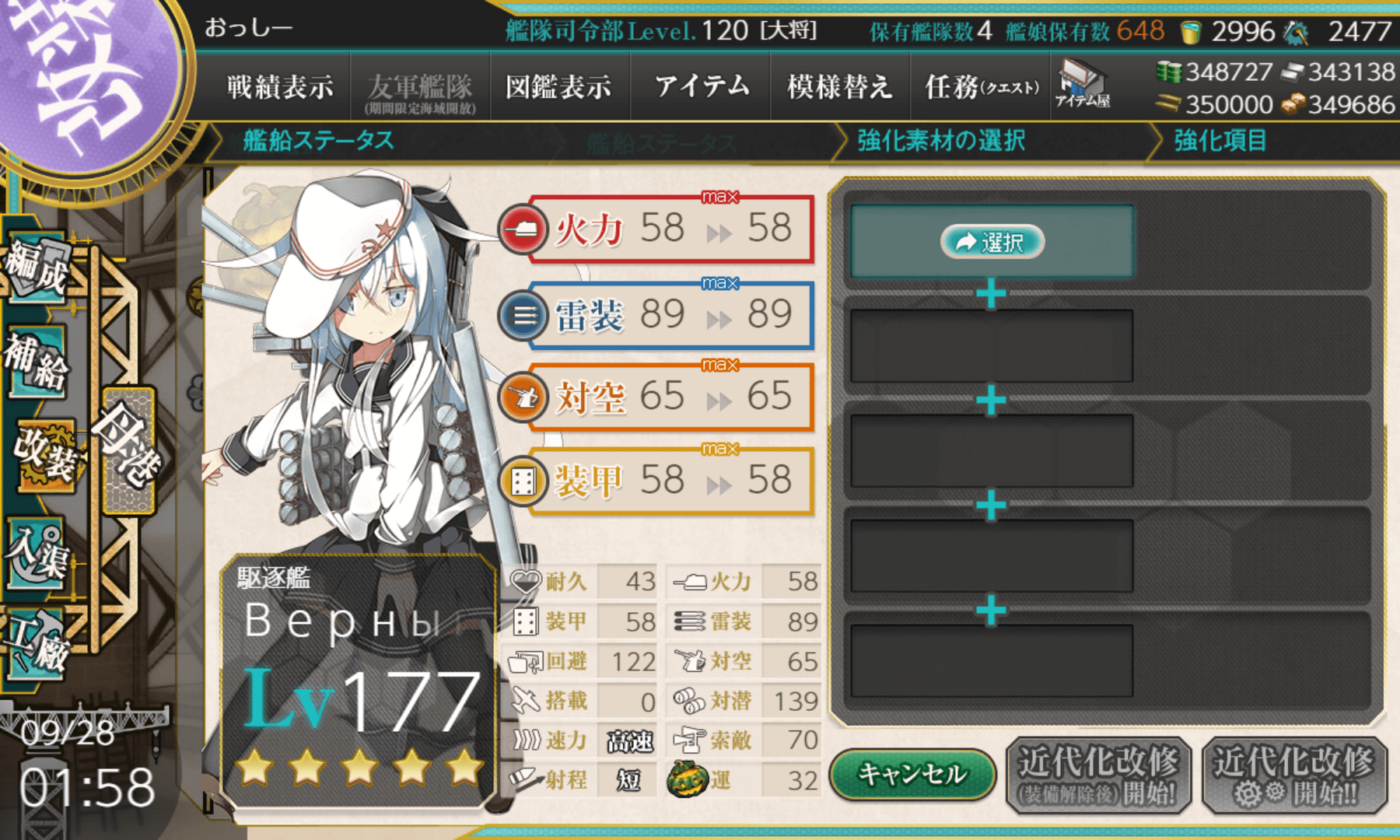 - 「風雲改二」の回避上限UP、対潜上限UP、運/運最大値UP